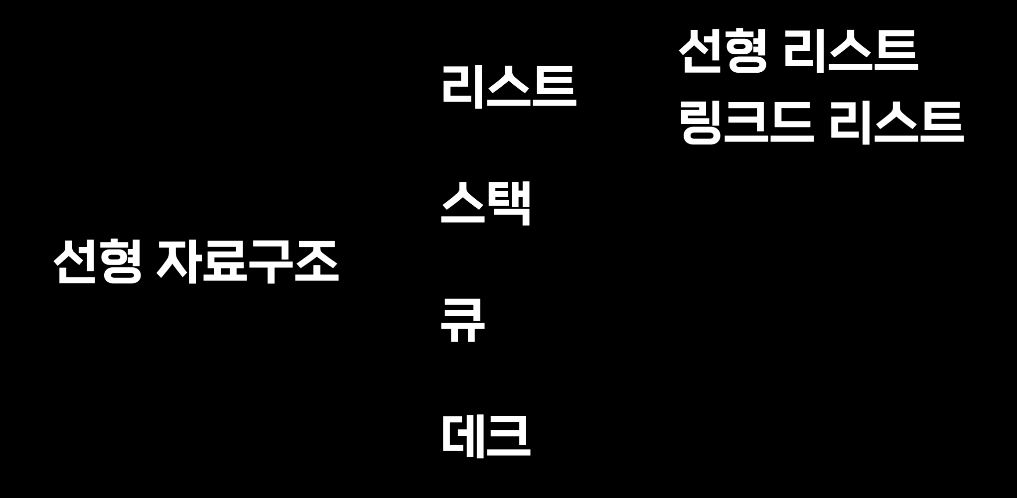 선형 자료구조로는 리스트, 스택, 큐, 데크(덱)가 존재한다.